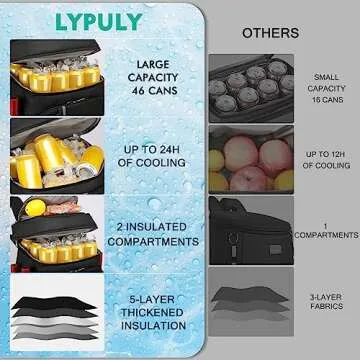 LYPULY 46 Cans Backpack Cooler - 2 Insulated Leak-Proof Compartments, Lightweight and Soft Lunch Backpack for Journeys, Camping, Beach