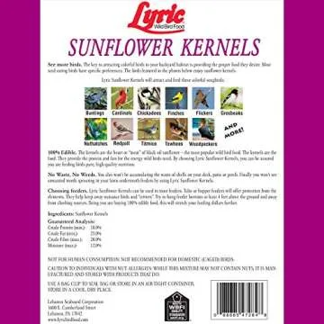 Transform your garden into a bird haven with the Lyric Sunflower Kernels. Feel the satisfaction as you attract a myriad of songbirds, witnessing nature's beauty up close right from your window. The joy of birdwatching will enhance your outdoor experience, making your space feel alive and vibrant. Plus, knowing that you are providing a nourishing and delicious food source for these wild creatures adds an element of purpose to your outdoor activities. Let every feeding be a memory for you and the birds!