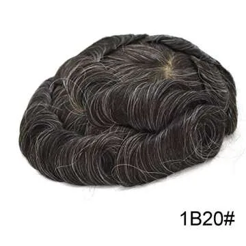 LYRICAL HAIR Toupee For Men Human Hair Piece Hair Systems for Men Soft French Lace Toupee Hairpieces Mens Hair Replacement Systems(8 * 10", 1B+20% SYNTHETIC GREY-120% Medium light to medium density)