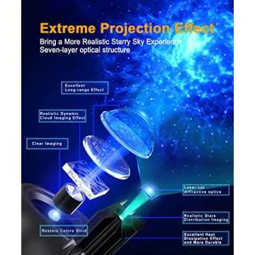 With its innovative 7-layer optical structure design, the Lyridz projector delivers a stunningly realistic immersive experience. Transform your bedroom, game room, or home theater into a mesmerizing galaxy, complete with twinkling stars and fluid nebula patterns. The attractive bubbles of light will drift across the walls and ceilings, captivating anyone who enters the space with a unique visual feast.