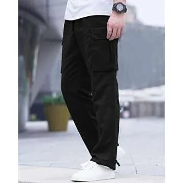 LYRXXX Men's Casual Cargo Pants Hiking Pants Workout Joggers Sweatpants for Men,Black,M1