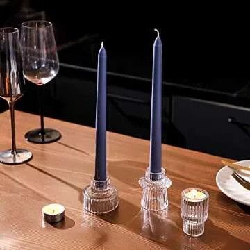 Lysenn Clear Glass Candle Holders for Pillar Candles, Taper Candles, Tealight Candles - Premium Multipurpose Candlestick Holders - Fits 7/8", 1.3", 1.5", 2" Candle - Decorative Candle Stand Set of 3