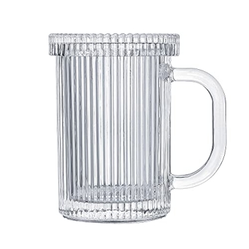 Lysenn Clear Glass Coffee Mug - Elegant Vertical Stripes with Lid - 11 oz