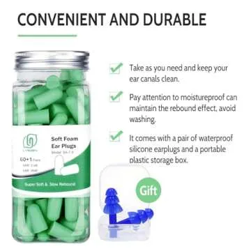 A large capacity pack offering 60 pairs guarantees longevity, making it an economical choice for families or individuals frequently exposed to noise. Accompanied by one pair of reusable silicone ear plugs and a convenient carrying case, you can easily carry your earplugs wherever life takes you.