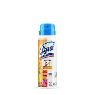 Show more Introducing the Lysol Neutraair Disinfectant Spray, a powerful 2-in-1 solution designed to keep your space fresh and germ-free! With a delightful Tropical Breeze scent, this spray is a must-have for anyone looking to maintain a hygienic environment while combating odors. Whether you’re at home, in the office, or on the go, Lysol’s trusted formula is proven to eliminate 99.9% of viruses and bacteria, including the COVID-19 virus, ensuring peace of mind with every spray. Perfect for tackling messes in kitchens, bathrooms, and any high-touch surfaces, this disinfectant spray effectively marries cleanliness with a refreshing fragrance, making every use more enjoyable.