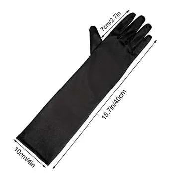 Show more Step back into the glamorous era of the 1920s with these exquisite satin gloves, designed to evoke the essence of the Great Gatsby. Crafted from high-quality mercerized cotton, these 15.7-inch elbow-length gloves are not just a fashion accessory; they are a statement of elegance and sophistication. The smooth fabric feels luxurious against your skin, making them perfect for a variety of occasions. Whether you are donning a flapper costume or attending a themed dinner party, these gloves will elevate your ensemble and enhance your captivating aura.