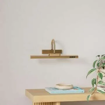 LYTARA Dimmable Cordless Picture Light with Controller and Timer, Rechargeable 5000mAh Battery Wall Sconce for Wall Pictures, Gallery Artwork, Paintings, Portraits, Dartboards (Gold)