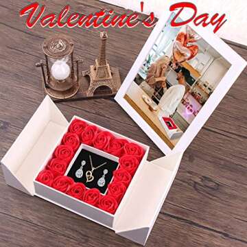 Show moreThe Lytoybe Eternal Real Rose Gift Box is a stunning blend of romance and elegance, perfect for expressing your deepest feelings. This luxurious gift box includes 16 exquisitely crafted soap roses, a delicate heart-shaped necklace, charming earrings, a decorative bow, and a small white gift bag—a complete package designed for memorable gifting. Each soap rose not only looks beautiful but also emits a delightful fragrance, making it ideal for enhancing any setting and creating a romantic atmosphere. Specially designed to be a heartfelt surprise for loved ones, this exquisite collection allows you to store treasured jewelry safely, including rings and earrings, adding even more versatility to this remarkable gift.