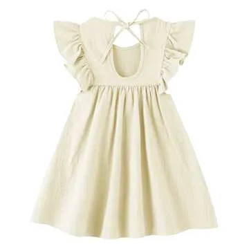 LYXIOF Toddler Baby Girl Cotton Linen Dress Ruffle Sleeve Halter Sleeveless Kids Casual Dresses Beige 80CM