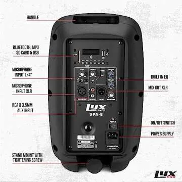 LyxPro SPA-8 Compact 8" Portable PA System 100-Watt RMS Power Active Speaker System Equalizer Bluetooth SD Slot USB MP3 XLR 1/4" 1/8" 3.5mm Inputs