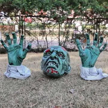 Show moreTransform your yard into a spine-chilling graveyard this Halloween with the LZGSHF Realistic Zombie Garden Stakes. This spectacular outdoor decoration features intricately designed zombie elements, including a skull and two zombie arms clad in ghostly white sleeves. Crafted from high-quality plastic, these garden stakes are not only eye-catching but also built to withstand the elements, making them a reliable addition to your seasonal decor. Their realistic design and vibrant colors ensure that your Halloween setup stands out, creating an eerie atmosphere that's perfect for all trick-or-treaters.
