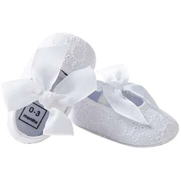LZSYC Baby Girls Mary Jane Flats Anti-Slip Bow White Princess Dress Shoes US5