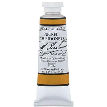 Show moreUnleash your creativity with the M. Graham & Co. GRM-11-124 Oil Paint in Nickel Quinacridone Gold. This premium 1.25oz (37 ml) tube features artist-quality oil paint formulated with walnut oil—a choice that elevates your painting experience. Unlike conventional paints, this unique formulation is solvent-free, making it not only safer for you but also for the environment. The artist-grade pigments are designed to provide increased loads of vibrant color, ensuring your artwork will pop with brilliance and clarity.
