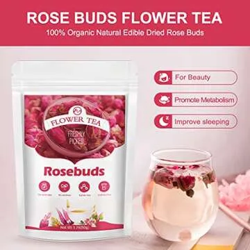 M inch Rose Buds Flower Tea - 100 percent Organic Natural Edible Dried Rose Buds Flowers for Cakes Decorating, Beauty & Promote Metabolism, 1.76 Ounce (Pack of 1)
