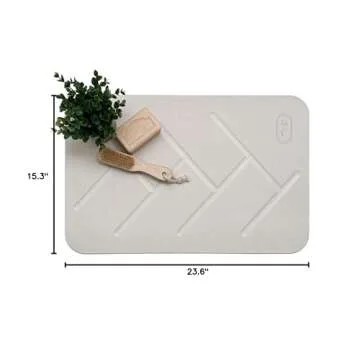 Show more Introducing the revolutionary M&L Stone Bath Mat, your ultimate solution for a cleaner, more stylish bathroom that's as functional as it is elegant. This extraordinary mat, crafted from 100% natural diatomaceous earth, is not only visually appealing but also incredibly effective at absorbing water. Say farewell to traditional soggy bathroom rugs that remain damp long after use. With its super absorbent capabilities, this bath mat evaporates moisture almost instantly, ensuring a dry and safe space after every shower.