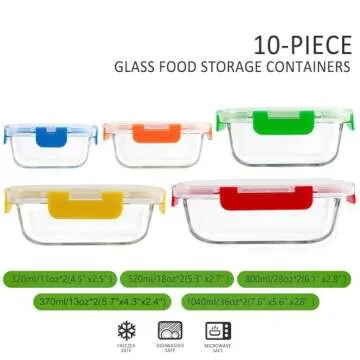 Show moreIntroducing the MCIRCO 10-Pack Glass Food Storage Containers – the ultimate solution for all your food storage needs! Crafted from premium borosilicate glass, these containers are designed to provide durability, safety, and versatility. This set includes a variety of sizes: 2 containers each of 11 oz, 13 oz, 18 oz, 28 oz, and 36 oz, ensuring that you have the perfect vessel for everything from meal prep to serving leftovers. The airtight smart locking lids, complete with silicone seals, ensure that your meals stay fresh and free from leaks, making them ideal for home storage, camping trips, or deli takeaways.