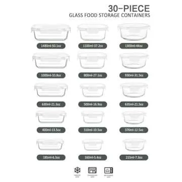 Show moreIntroducing the MCIRCO 30-Piece Food Container Set—an essential addition to every kitchen that perfectly combines style and functionality. Designed by the trusted brand MCIRCO, this remarkable set features 15 premium borosilicate glass containers and 15 airtight lids, ensuring you always have the ideal size at hand. With capacities ranging from 5.4 oz to a generous 50.1 oz, it’s versatile enough for everything from meal prep and leftovers to snacks and meal transport.