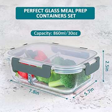 M MCIRCO [5-Pack,30 Oz Glass Meal Prep Containers 2 Compartments Portion Control with Snap Locking Lids Glass Food Storage Containers, Microwave, Oven, Freezer and Dishwasher