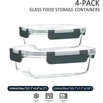 M MCIRCO [80 oz & 36 oz Extra Large Glass Food Storage/Baking Containers Set with Lids, 2 Pack 80 oz(10 cup)&2 Pack 36 oz (4.5 cup) Airtight Glass Container,Microwave,Oven,Freezer and Dishwasher