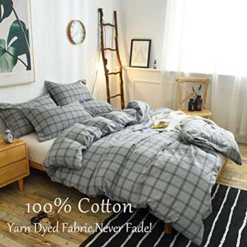 M&Meagle 3 Pieces Grey Grid Duvet Cover Queen | 100% Washed Cotton Bedding Set