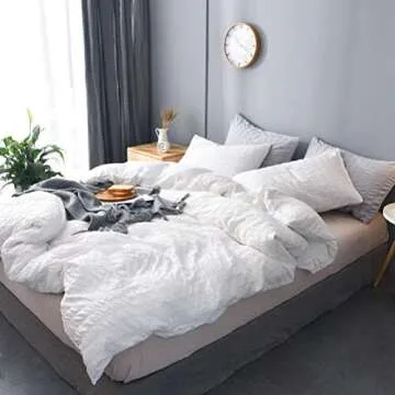 M&Meagle 3 Pieces Textured Duvet Cover White Set with Zipper Closure,100% Washed Microfiber Seersucker Fabric,Luxury Hotel Quality Bedding-King Size(1 Duvet Cover 2 Pillowcases)