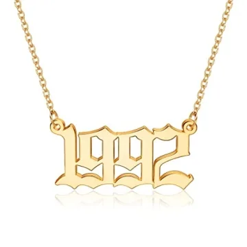 Introducing the stunning M MOOHAM Birth Year Necklace, a captivating jewelry piece that elegantly captures the essence of your significant life events. This exquisite gold-plated necklace is designed to symbolize milestones such as your birthday, graduation, or wedding, allowing you to wear your cherished memories close to your heart. The unique Old English font not only makes this necklace a stylish statement piece but also a deeply personal reminder of your special year.