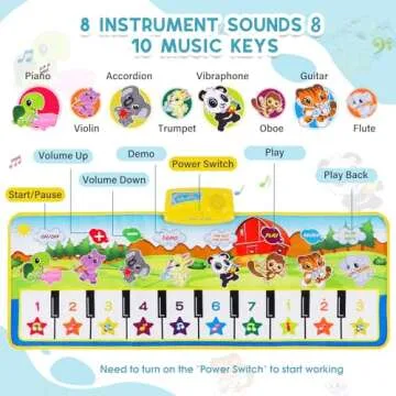 M SANMERSEN Piano Mat, 39.5" X 14" Musical Mat 8 Instrument Sounds Piano Mat for Toddlers Touch Play Dancing Mat Toy for 1 2 3 Year Old Girls Boys Gifts