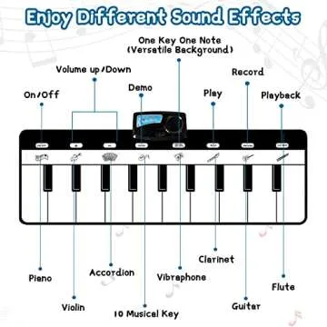 Show moreDiscover the joy of music with the M SANMERSEN Piano Mat! This engaging musical mat is designed to captivate young musicians with its interactive features and colorful design. Ideal for toddlers aged 1-5, this mat introduces 10 piano keys, 8 distinct musical instrument sounds, and 5 dynamic play modes. The immersive experience allows children to explore the enchanting world of sound while developing their musical talents.