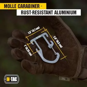 aluminum carabiner boasts a compact design, measuring 2.6 inches in length and 1.5 inches in width (6.5 x 3.7 cm). Whether you're looking to attach extra gear to your lifejacket, belt, or backpack, this molle-compatible snap hook ensures quick and effortless access to your belongings. Its lightweight yet durable construction is a favorite among police, fire & rescue professionals, making it the perfect companion for outdoor adventures! Less