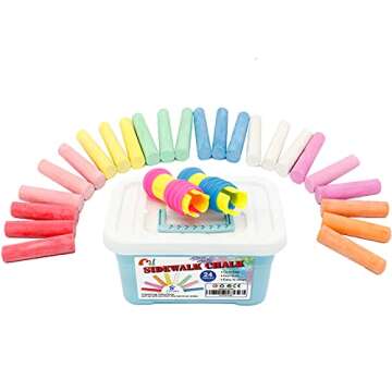 Compared to other sidewalk chalk products in the market, the M2YL1DAO Sidewalk Chalk stands out with its generous 24 pieces and vibrant color selection. Many alternatives offer fewer pieces or are made of lower-quality materials that can easily break or crumble. The innovative chalk holders included in this set also provide additional safety and ease of use, which sets it apart from typical chalk brands that neglect these enhancements. Plus, our chalk’s washability and non-toxic formulation ensure peace of mind for parents aiming to provide safe play for their children.