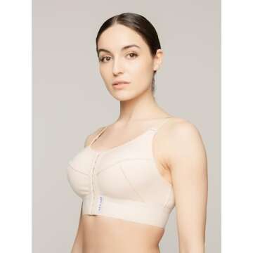 The adjustable straps are designed for a perfect fit; they can be detached from the front, making it easy to put on and take off, without compromising on support. A vital feature of this bra is the supportive 2" elastic band placed under the breast, which enhances stability and comfort, ensuring that the bra stays in place while providing the necessary support. This thoughtful design translates to a product that not only aids in recovery but also offers everyday comfort.