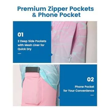 maamgic 2 in 1 Mens Swim Trunks 7 Inch Swim Shorts Swim Suits Board Shorts Gradient Water Ripple-Pink Blue X-Large