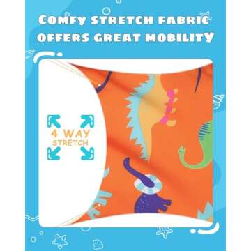 Show moreIntroducing the maamgic Boys Swim Trunks - the ultimate swimwear choice for your little adventurer! Crafted from a premium blend of 93% Polyester and 7% Spandex, these swim shorts offer a lightweight feel that is both comfortable and quick-drying. Designed specifically for active kids, the unique 4-way stretch fabric allows for extensive mobility, making these trunks perfect for swimming and beach activities. With playful dinosaur patterns and vibrant orange hues, these swim trunks will make every beach day an exciting adventure!