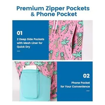 These swim trunks go beyond aesthetics with their practical features designed for the active lifestyle. The dual side mesh pockets with zippers, as well as an additional built-in pocket on the liner, offer secure storage for your essentials such as cards and keys. No more worrying about losing your belongings while you enjoy a relaxing day in the sun!