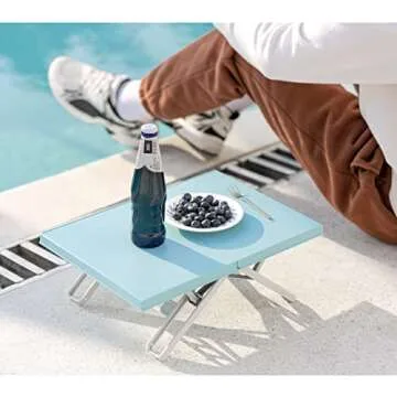 With a robust capacity of up to 44 pounds, this table is your go-to solution for holding everything from drinks to snacks and even your laptop. Measuring just 11.7'' x 8.6'' x 1.7'' when folded, it conveniently fits into your backpack or beach bag, making it a breeze to carry around. Once open, the table expands to a comfortable size of 16.6'' x 11.7'', providing ample space for all your essentials while you bask in the sun.