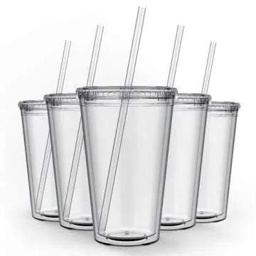 Maars Drinkware Bulk Double Wall Insulated Acrylic Tumblers with Straw and Lid (Set of 12), 16 oz, Clear