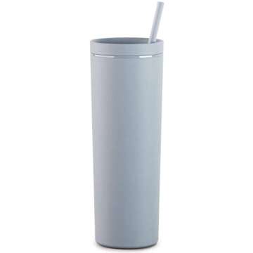Show more Introducing the all-new improved 18 oz tumbler, crafted with the highest quality materials to ensure your beverages stay at the perfect temperature, no matter where your day takes you. This tumbler, designed with a redesigned press-on lid, allows you to sip directly or utilize the included matching straw for convenience. The sleek, slim body of the tumbler makes it easy to hold and transport, fitting perfectly in your vehicle's cup holder!