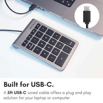 Macally Wired USB C Numeric Keypad for Mac - Work Better - Type C Number Pad for MacBook Pro/Air, iMac, and PC - USB C Wired Number Pad with 5ft Cable and Arrow Keys - 10 Key USB Keypad for Laptop