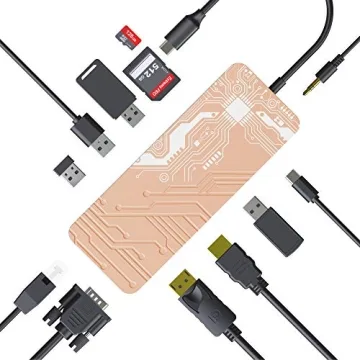 MacBook Pro Docking Station, Display Port USB C Hub, 13-in-1 Gigabits Ethernet Dock with 4K HDMI, DP, VGA, 4* USB 3.0, PD 3.0, 3.5mm Jack, Micro SD/TF Memory Card Readers for Mac OS/Windows Laptops