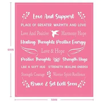 MACEVIA Breast Cancer Gifts for Women Fleece Healing Thoughts Blanket - Perfect Warm Comfort Gift (50"x60", Pink)