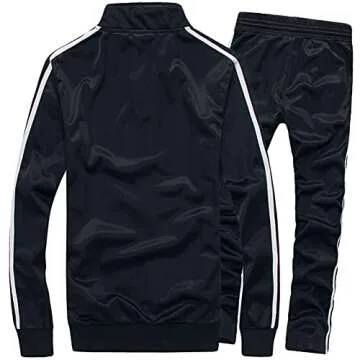 MACHLAB Men's Activewear Full Zip Warm Tracksuit Sports Set Casual Sweat Suit Black XL