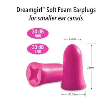 Show moreIntroducing the Mack's Dreamgirl Soft Foam Earplugs - the ultimate solution designed specifically for those with smaller or sensitive ear canals. These earplugs are approximately 20% smaller than the standard size, boasting a softer and silky smooth texture that makes them a dream to wear for extended periods. Whether you’re a light sleeper battling your partner's snoring or a student needing to concentrate in a noisy environment, these earplugs are your perfect companion. With an impressive Noise Reduction Rating (NRR) of 30 decibels and a Single Number Rating (SNR) of 33 decibels, Mack’s Dreamgirl Earplugs effectively block disruptive sounds while ensuring you remain aware of important noises like alarms or urgent calls.