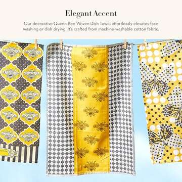 Every inch of the Queen Bee woven dish towel reflects MacKenzie-Childs’ dedication to quality and design. Its size is perfect for both the kitchen and bathroom, allowing for versatile use without compromising on style. Washable and durable, this towel retains its vibrant colors and intricate design wash after wash, making it a staple accessory. This isn’t just a dish towel—it's a statement piece that harmonizes beautifully with any decor theme.
