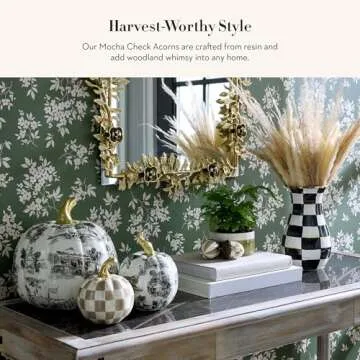 MACKENZIE-CHILDS Decorative Acorns, Resin Acorn Fall Decor for Kitchen and Home, Set of 2, Brown-and-White Mocha Check