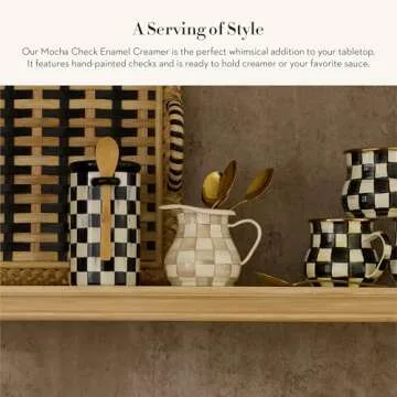 MACKENZIE-CHILDS Enamel Creamer, Creamer Dispenser with Pour Spout, Kitchen Enamelware, 14-Ounce Capacity, Brown-and-White Mocha Check
