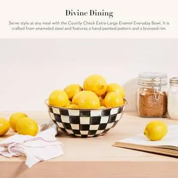 MACKENZIE-CHILDS Enamel Everyday Bowl, Serving Bowl for Entertaining, Extra Large, Black-and-White Courtly Check