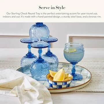 Not just functional, this tray doubles as a stunning home decor accessory. At MacKenzie-Childs, we believe in elevating everyday items into extraordinary pieces that enrich your home. Whether you're hosting a gathering or enjoying a quiet evening, the Sterling Check round tray serves as a delightful centerpiece.