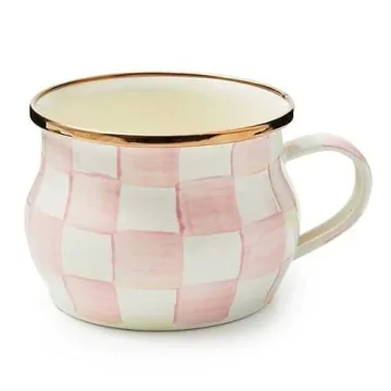 Show moreIndulge in a delightful tea-drinking experience with our MACKENZIE-CHILDS Enamel Teacup. This charming creation from the esteemed brand MacKenzie-Childs is not just a mere vessel for beverages; it's a beautiful art piece that transforms every sip into a moment of joy. Crafted intricately with a hand-glazed steel underbody, this teacup is embellished with lovely hand-painted pink-and-white checks. To add a sophisticated touch, it features a luxurious bronzed stainless steel rim. This blend of durability and elegance makes it a stunning addition to any dinnerware set.