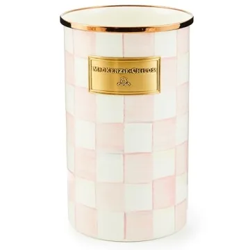 Stylish MACKENZIE-CHILDS Enamel Utensil Holder - Pink-and-White Rosy Check for Countertop