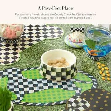 Introduce your beloved pet to the elegance of dining with our MacKenzie-Childs Enamel Pet Food Bowl. This uniquely designed dish combines fashion and function, crafted from heavy-gauge steel to guarantee durability while charming your canines and felines alike. Its stunning jewel-toned palette, woven through glossy black-and-white checks, elevates any feeding experience to a stylish affair. This pet essential doesn’t just cater to your pet's needs; it transforms pet feeder aesthetics into...